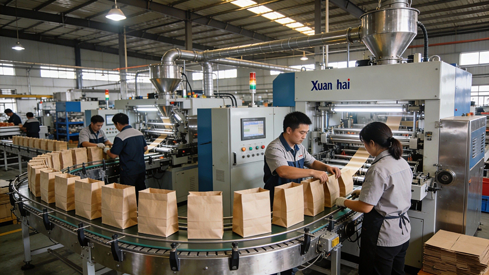 "The Xuanhai V bottom paper bag making machine has revolutionized our food packaging operations. Its high production speed and precision have allowed us to meet the growing demand for our products while maintaining consistent quality. The eco-friendly features have also helped us reduce our environmental impact and appeal to environmentally conscious consumers." - John Doe, CEO of a food packaging company